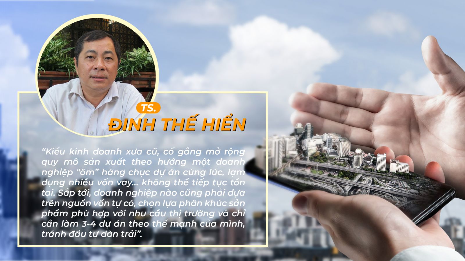 “Kiểu kinh doanh xưa cũ, cố gắng mở rộng quy mô sản xuất theo hướng một doanh nghiệp “ôm” hàng chục dự án cùng lúc, lạm dụng nhiều vốn vay… không thể tiếp tục tồn tại. Sắp tới, doanh nghiệp nào cũng phải dựa trên nguồn vốn tự có, chọn lựa phân khúc sản phẩm phù hợp với nhu cầu thị trường và chỉ cần làm 3-4 dự án theo thế mạnh của mình, tránh đầu tư dàn trải”, ông Hiển nhận định.