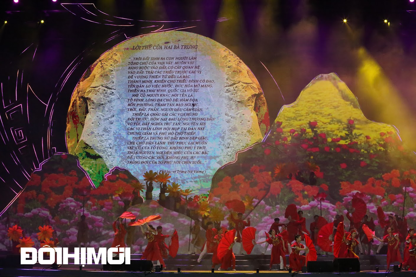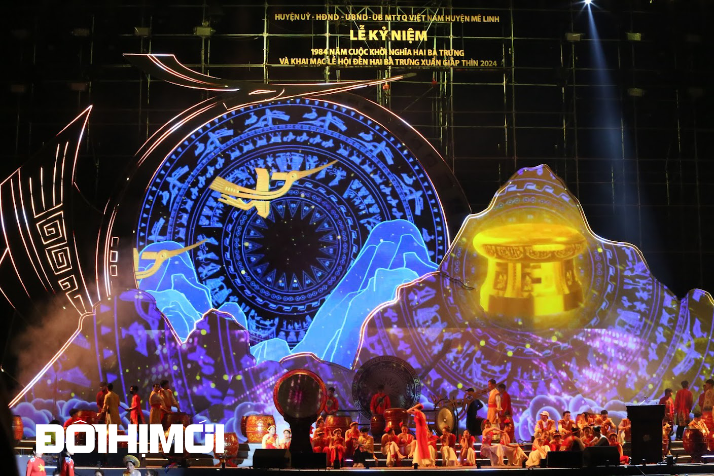 Được biết, đây là chương trình nghệ thuật bán thực cảnh, kết hợp công nghệ 3D mapping hiện đại được tổ chức lần đầu tiên tại huyện Mê Linh nhằm tưởng nhớ, tri ân công đức của hai vị kiệt nữ anh hùng dân tộc Trưng Trắc và Trưng Nhị, các tướng lĩnh tham gia cuộc khởi nghĩa, giành lại nền độc lập dân tộc vào những năm 40-43 sau Công nguyên.