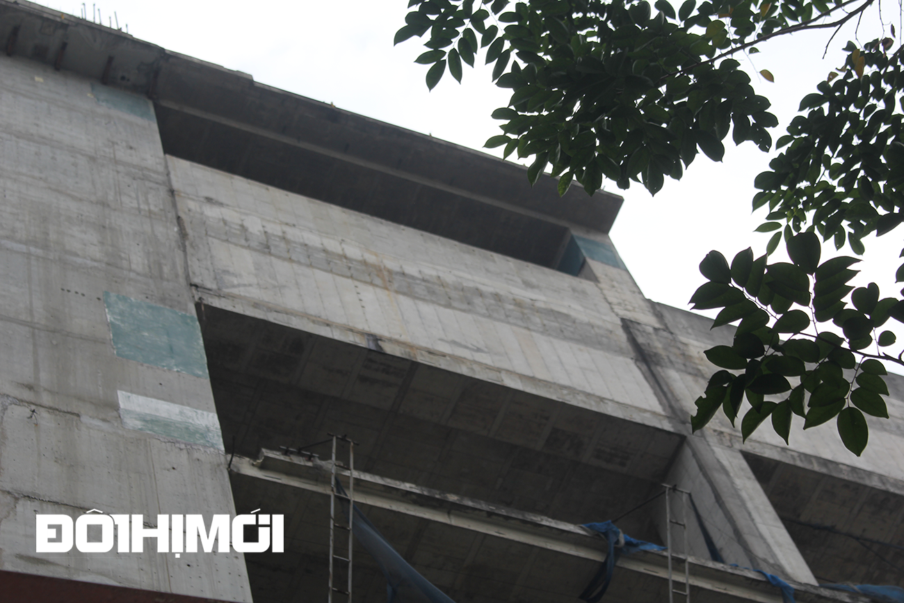 Do bị bỏ hoang lâu năm, phần bạt che ngoài của dự án đã rách tả tơi, trong khi các thanh sắt thì hoen gỉ.