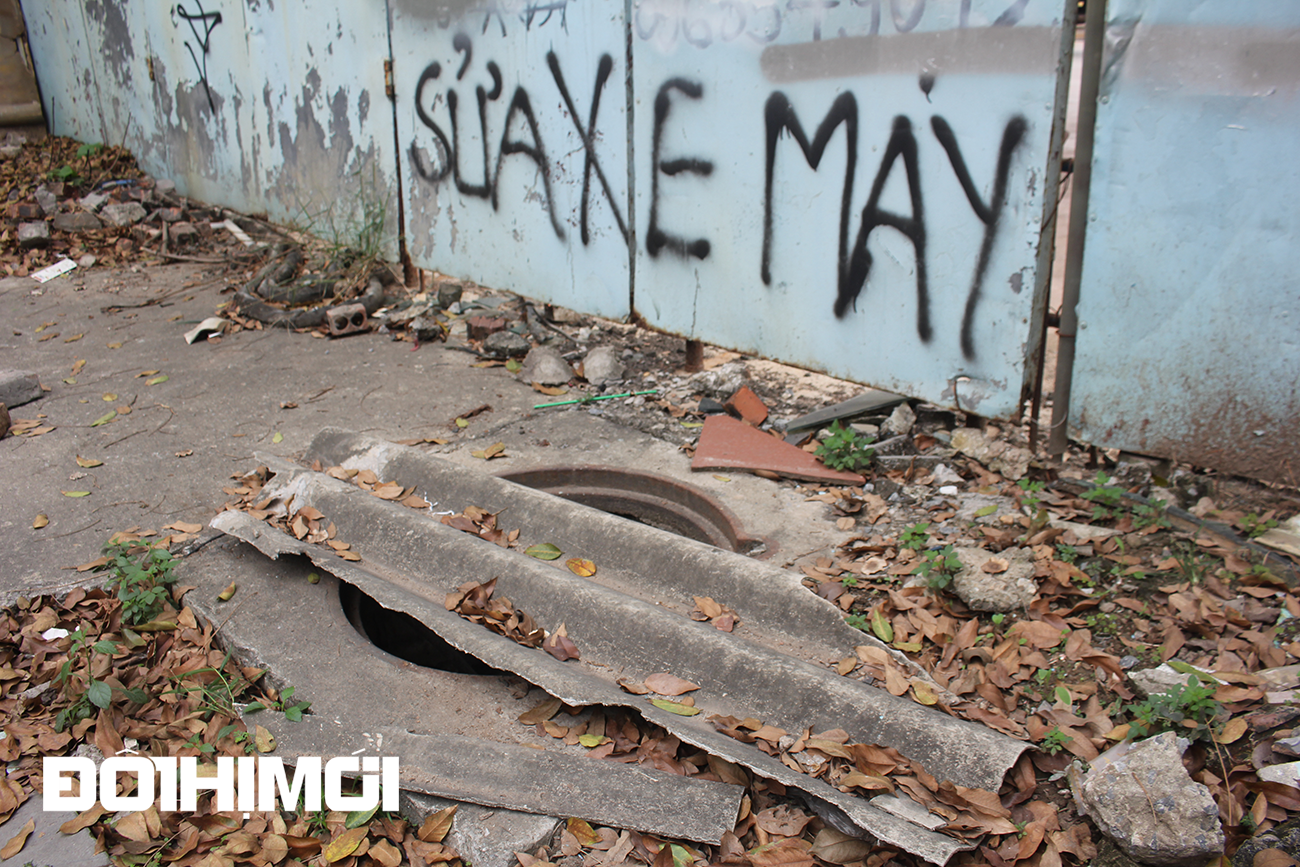 Miệng cống trước cổng phía đường Phạm Văn Đồng được che đậy sơ sài, tiềm ẩn nguy hiểm cho người đi đường, nhất là vào buổi tối.